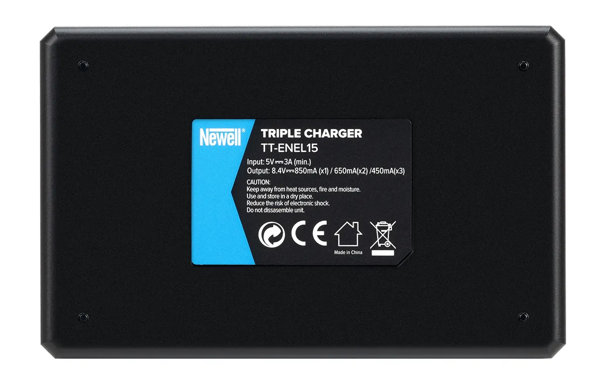- Ładowarka trójkanałowa Newell TT-USB-C do akumulatorów Nikon EN-EL15