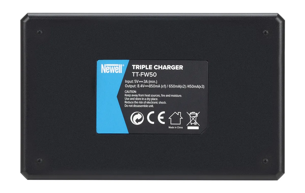 - Ładowarka trójkanałowa Newell TT-USB-C do akumulatorów Sony NP-FW50