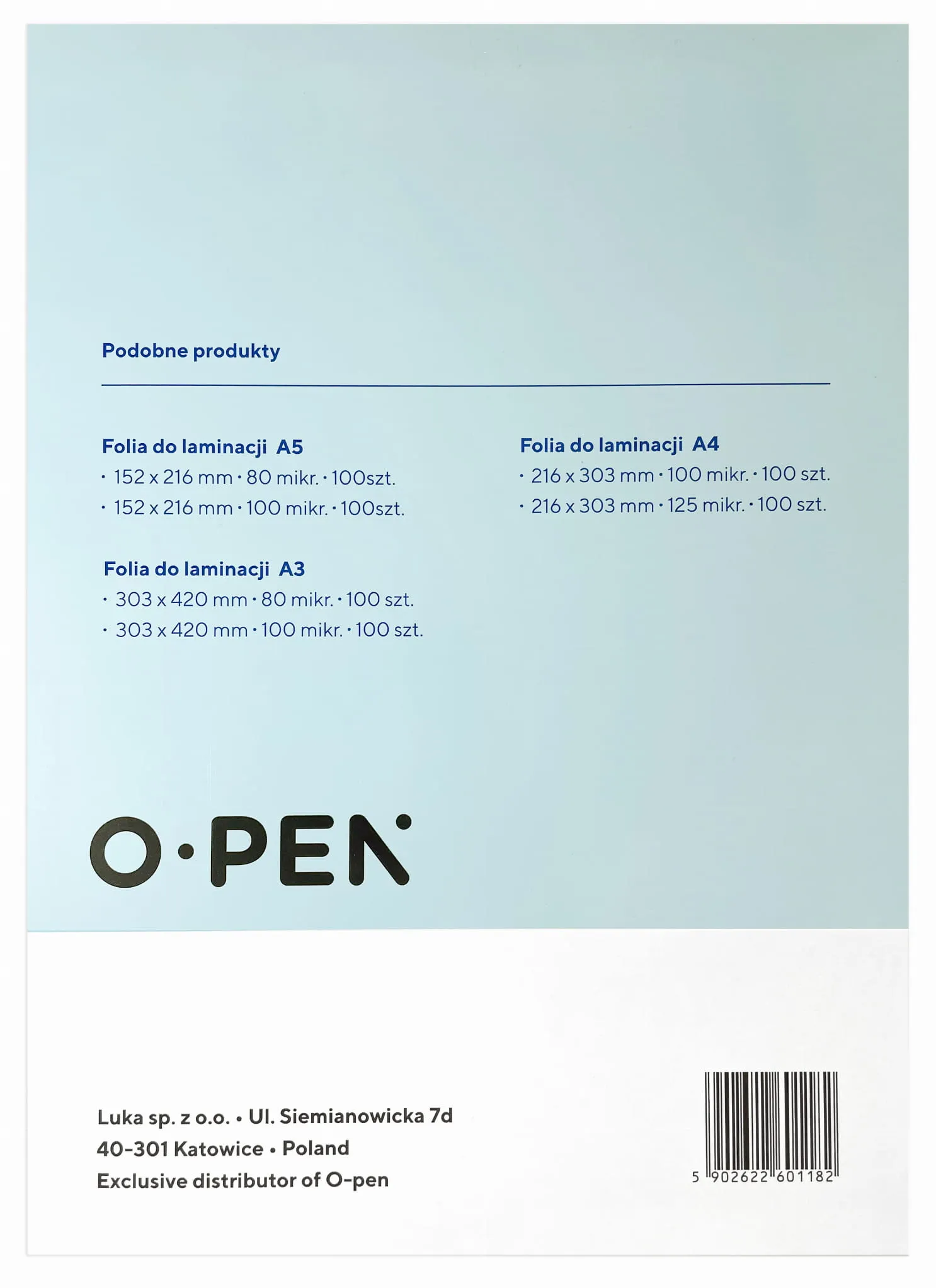 Folia firmy O-PEN do laminatorów A4