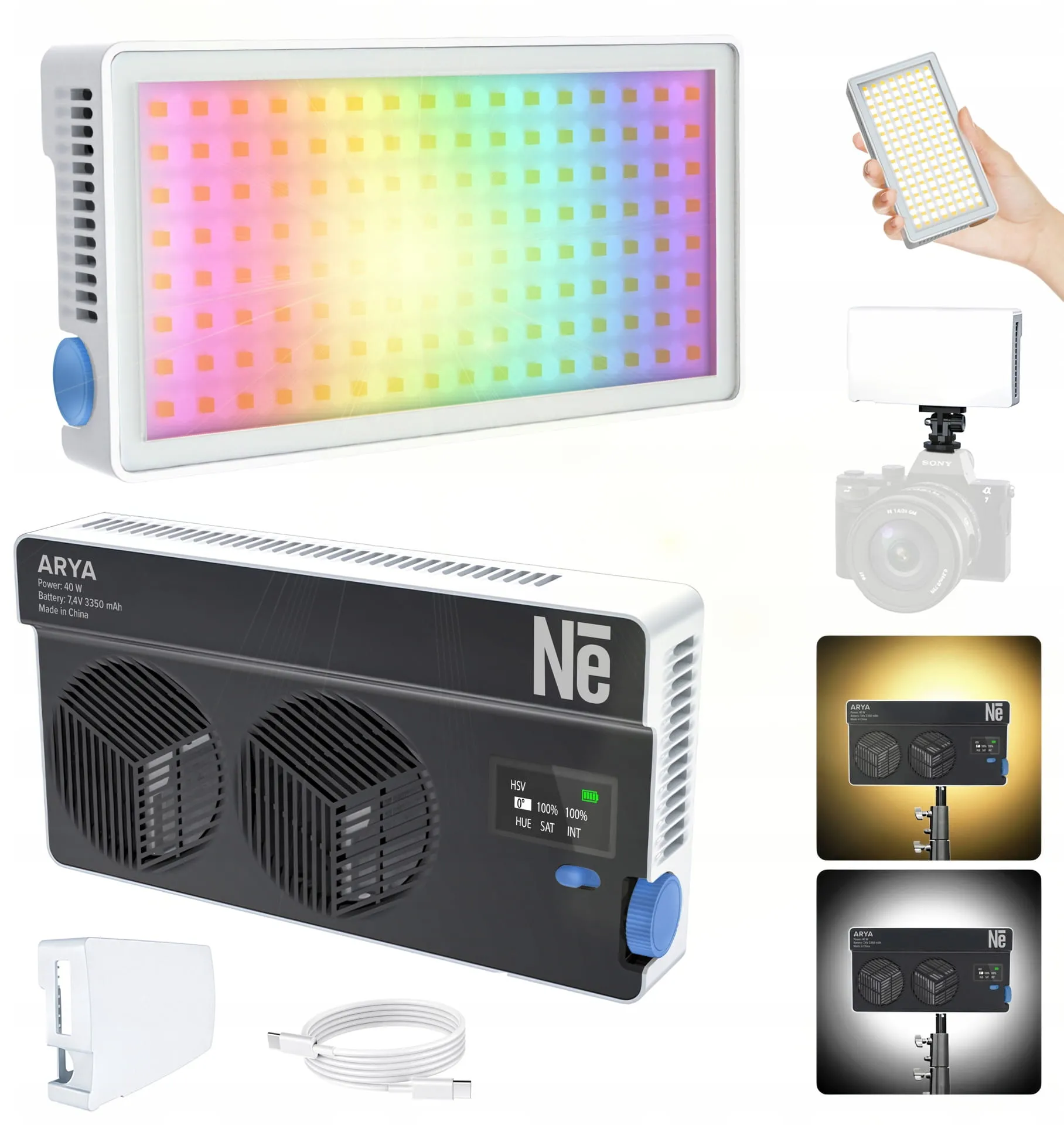 Newell Arya RGB 40 W to idealny wybór dla twórców wideo, fotografów, vlogerów, streamerów, tiktokerów, influencerów i profesjonalistów z branży beauty. Świetnie sprawdzi się podczas sesji makijażowych, portretowych, stylizacji włosów czy transmisji na żywo, gdzie ważne jest idealne, miękkie światło i wierne odwzorowanie kolorów. Kompaktowa konstrukcja i zintegrowany akumulator sprawiają, że Arya jest niezastąpionym narzędziem również dla twórców pracujących w plenerze i dynamicznych warunkach studyjnych. Szeroki zakres regulacji temperatury barwowej, tryb HSV i aż 24 efekty FX oferują ogromne możliwości twórcze - od naturalnych ujęć beauty po stylizowane sesje zdjęciowe, fotografię produktową i kreatywne sceny wideo. To lampa, która dostosuje się do Twojej wizji, gdziekolwiek przyjdzie Ci z nią pracować!