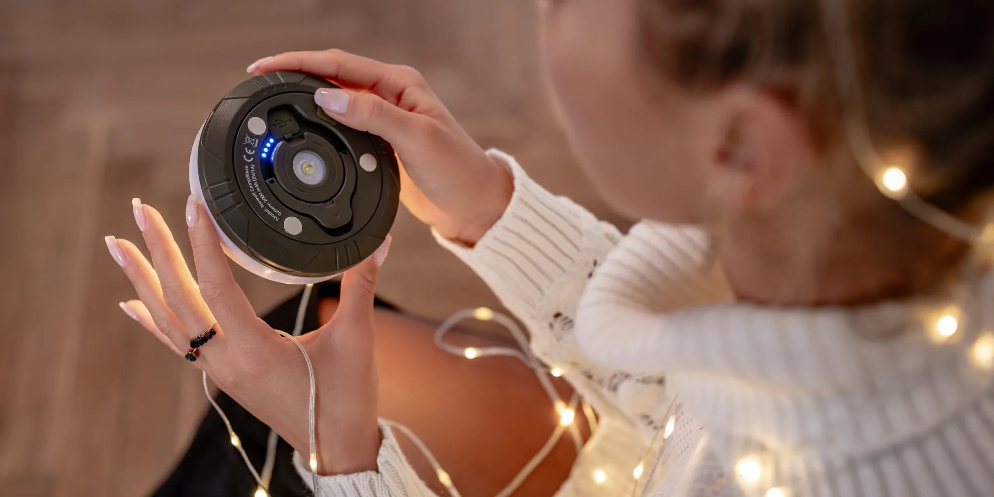 Dzięki temu urządzeniu nie musisz już martwić się o splątane przewody czy trudności z przechowywaniem girlandy. Dzięki sprytnemu mechanizmowi chowania, lampa Newell CampBlaze pozwala na łatwe i szybkie zwinięcie 10-metrowego przewodu świetlnego. Wystarczy użyć specjalnego pokrętła, by w kilka sekund schować lampki do kompaktowego etui. Takie rozwiązanie pozwoli nie tylko zaoszczędzić czas, ale także cenne miejsce - w plecaku czy skrzynce z ozdobami ogrodowymi.