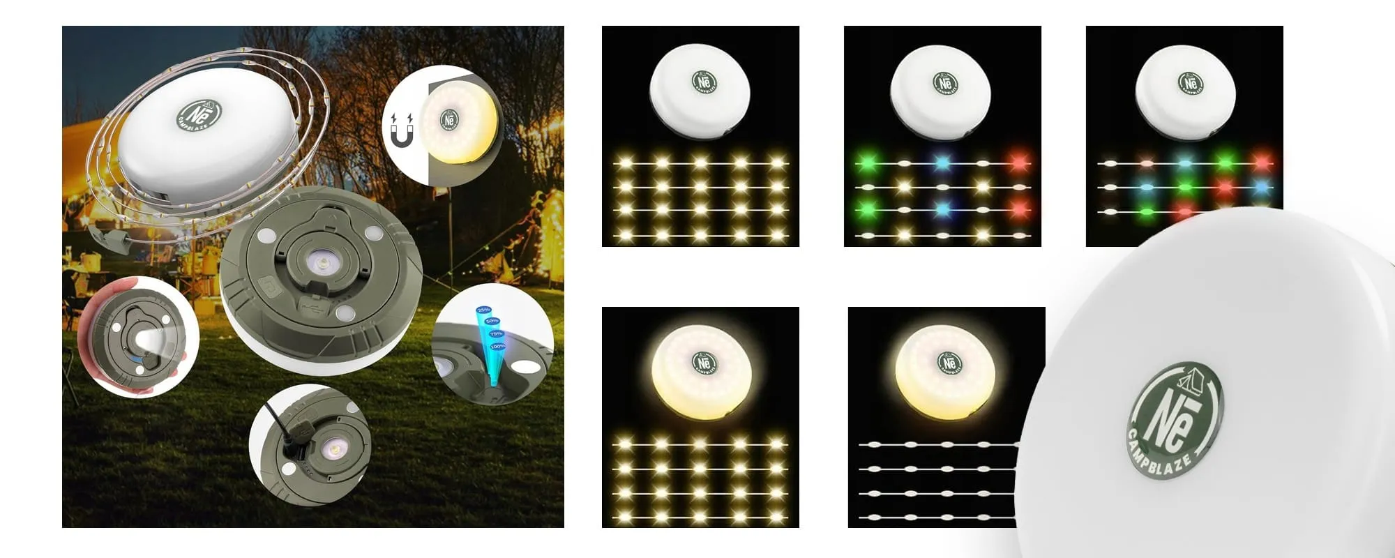 Dzięki różnym trybom podświetlenia przewodu świetlnego można dowolnie kreować atmosferę przestrzeni wokół siebie. Lampa CampBlaze oferuje ciepłe światło zapewniające przytulny nastrój, migające efekty RGB oraz tryby ściemniania i rozjaśniania. Możesz także wybrać naturalne światło, idealne do czytania na zewnątrz po zmroku lub relaksu w domu.
