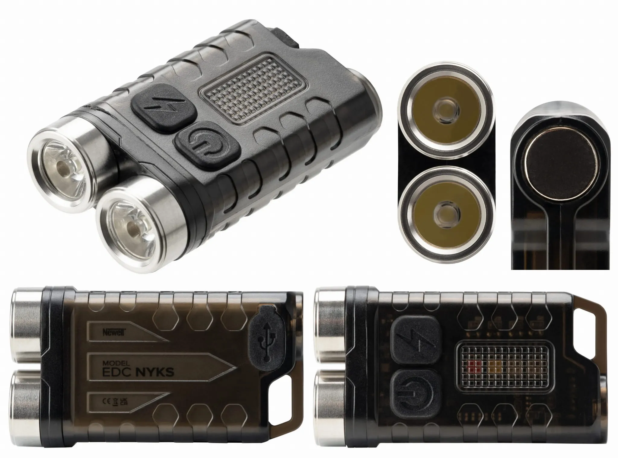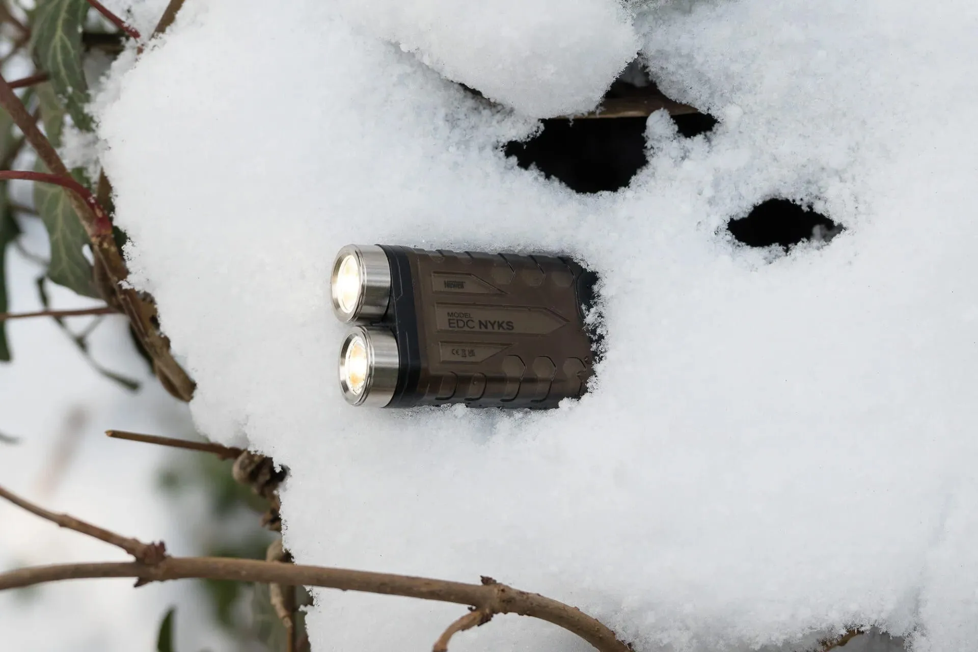 Newell EDC Nyks to poręczna i niezwykle funkcjonalna latarka LED. Zasięg wiązki światła sięga tutaj nawet 100 metrów. Regulowana moc pozwala dostosować urządzenie do aktualnych potrzeb. Maksymalne natężenie światła na poziomie 900 lumenów sprawia, że Nyks może z powodzeniem konkurować z większymi latarkami taktycznymi. Funkcjonalność urządzenia uzupełnia boczny panel LED oferujący 5 trybów pracy (w tym światło UV, czerwone i ostrzegawcze).