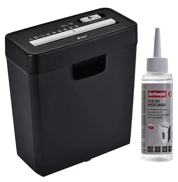Sposób użycia: niewielką ilość oleju Activejet ASO-125 należy nanieść bezpośrednio na noże tnące lub na kartkę papieru i pociąć ją w niszczarce. Przed olejowaniem zaleca się opróżnić pojemnik.