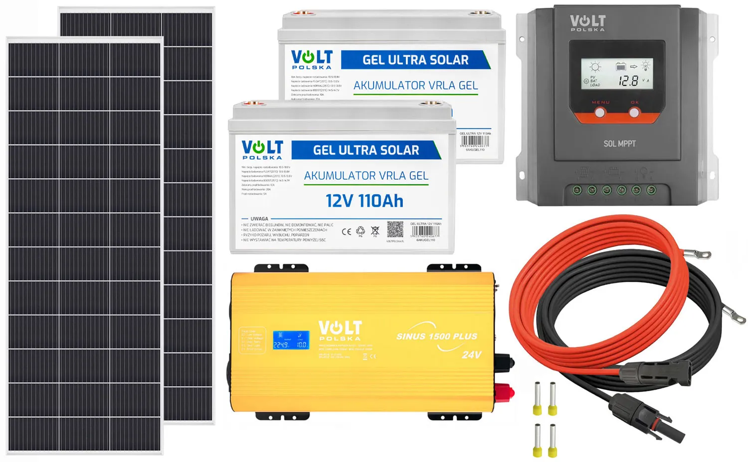 - Dwa akumulatory żelowe firmy Volt Polska GEL VPRO Premium 12V 110Ah