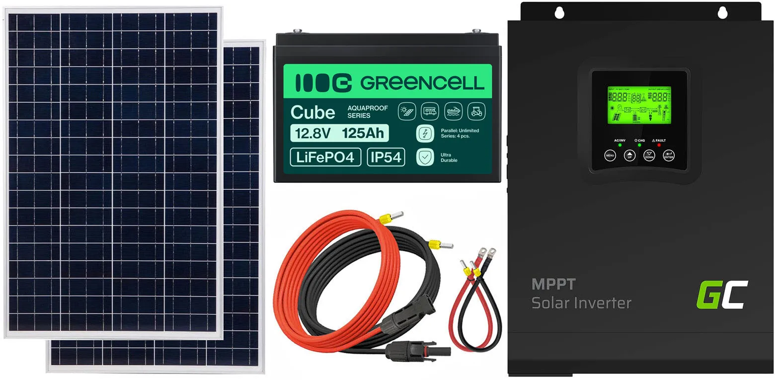 - Inwerter solarny Off-Grid Green Cell 12VDC 230VAC 1000W/2000VA SINUS z ładowarką solarną MPPT