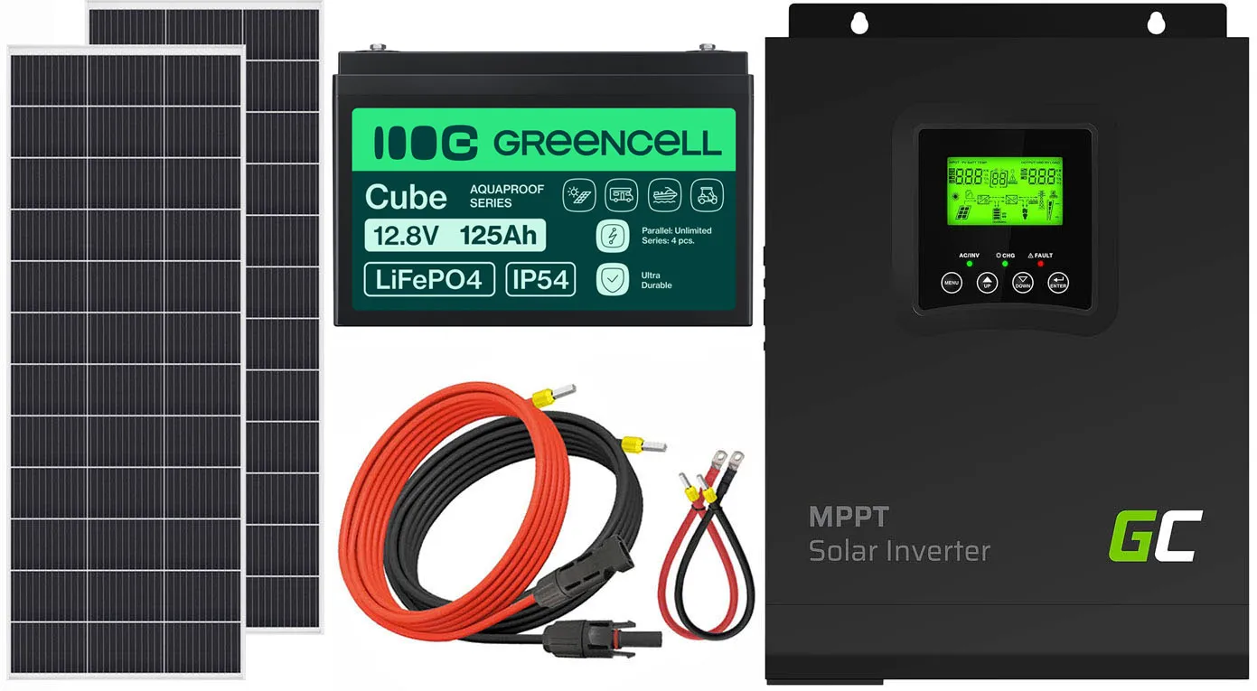 - Inwerter solarny Off-Grid Green Cell 12VDC 230VAC 1000W/2000VA SINUS z ładowarką solarną MPPT