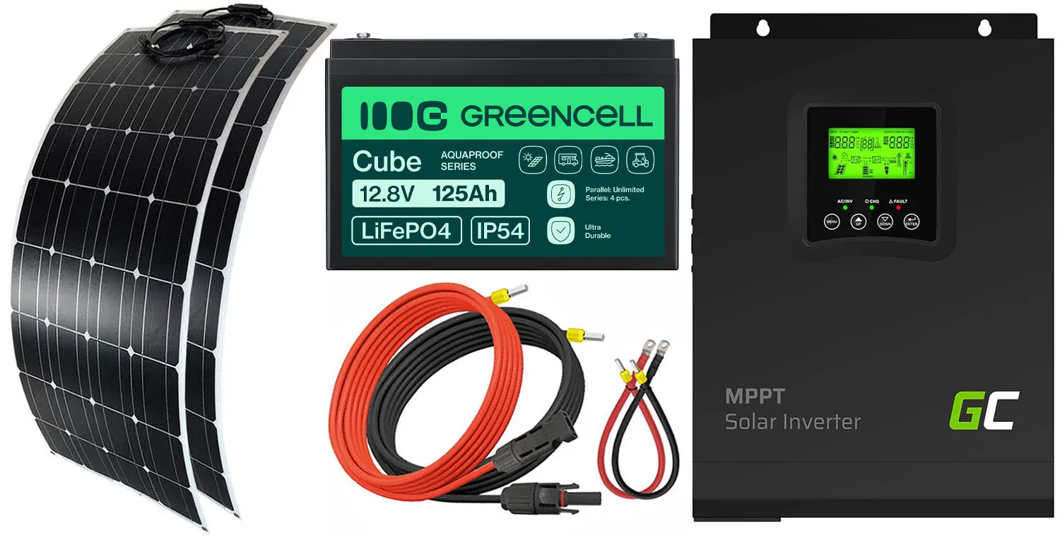 - Inwerter solarny Off-Grid Green Cell 12VDC 230VAC 1000W/2000VA SINUS z ładowarką solarną MPPT