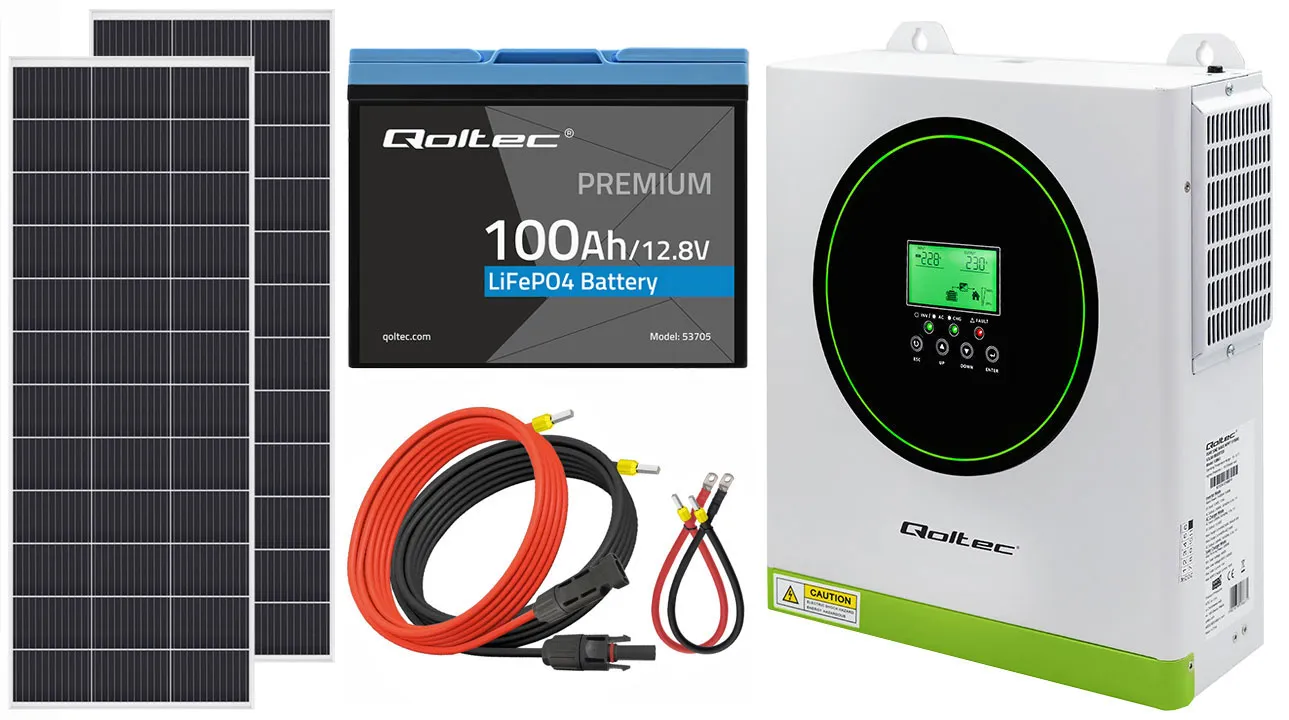- Hybrydowy inwerter solarny Off-Grid Qoltec Power Factor 1.0 12V 1500W 100A 500V