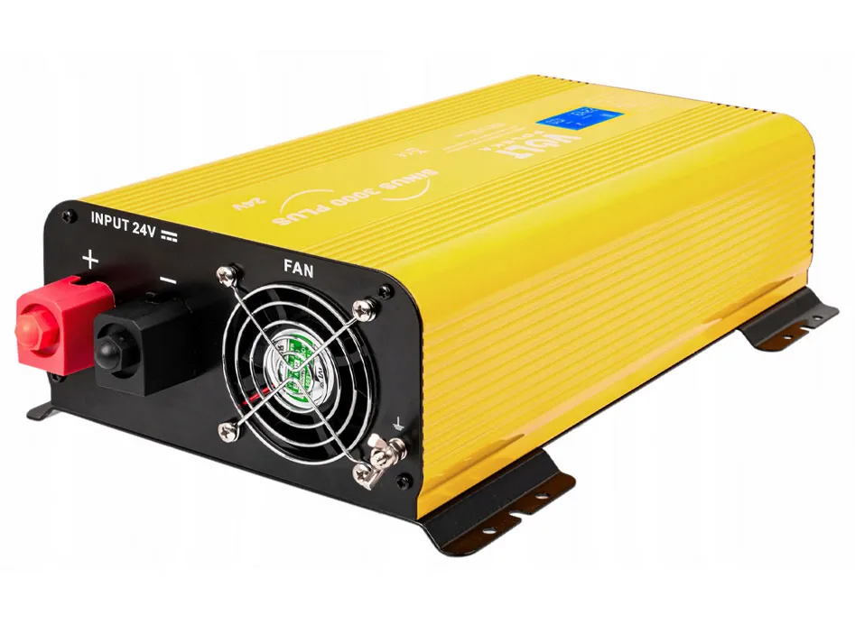Elektroniczna przetwornica SINUS PLUS 3000 24V służy do zasilania urządzeń elektrycznych wymagających napięcia przemiennego 230V z akumulatorów i instalacji samochodowych o napięciu stałym 24V.
