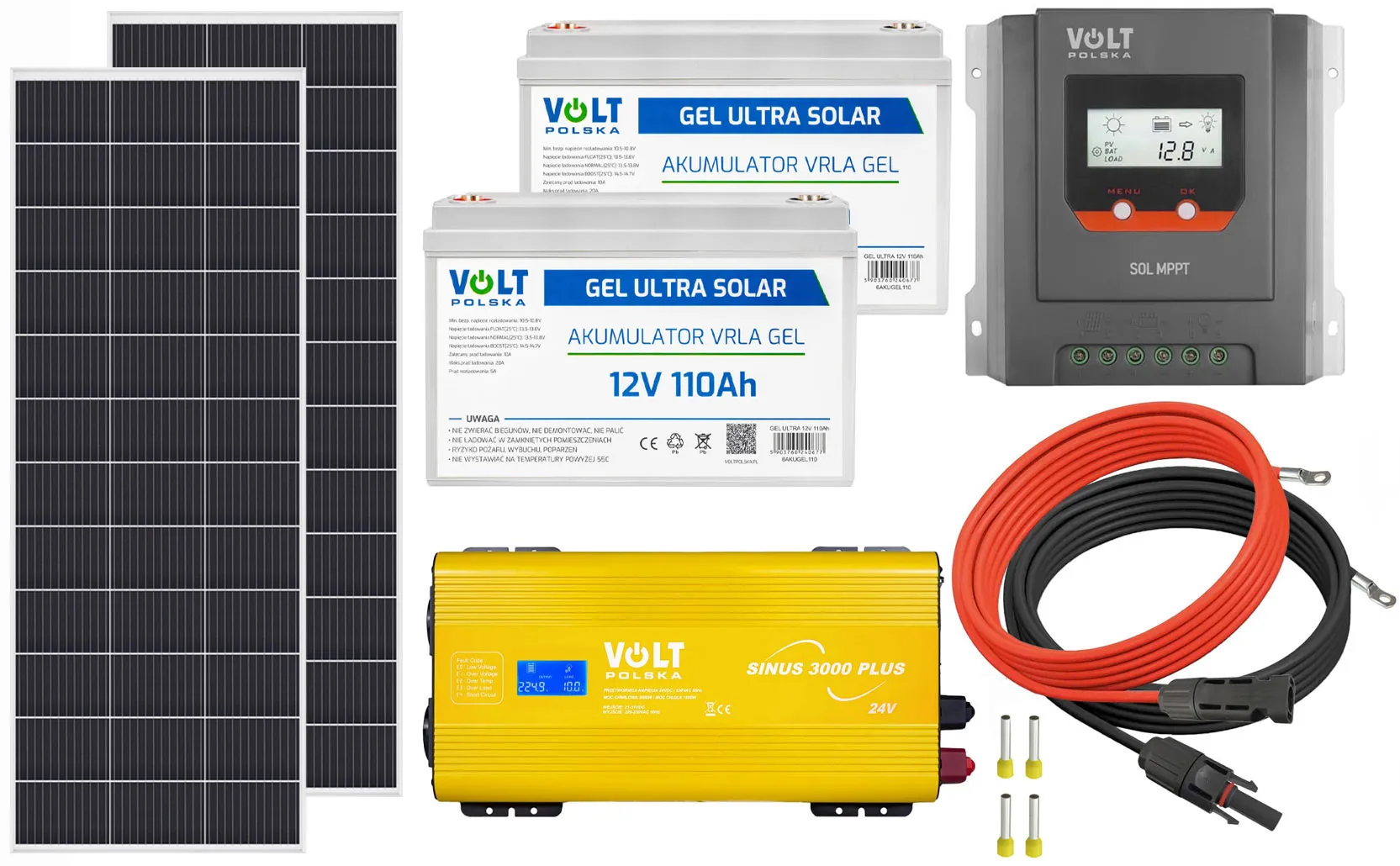- Dwa akumulatory żelowe firmy Volt Polska GEL VPRO Premium 12V 110Ah