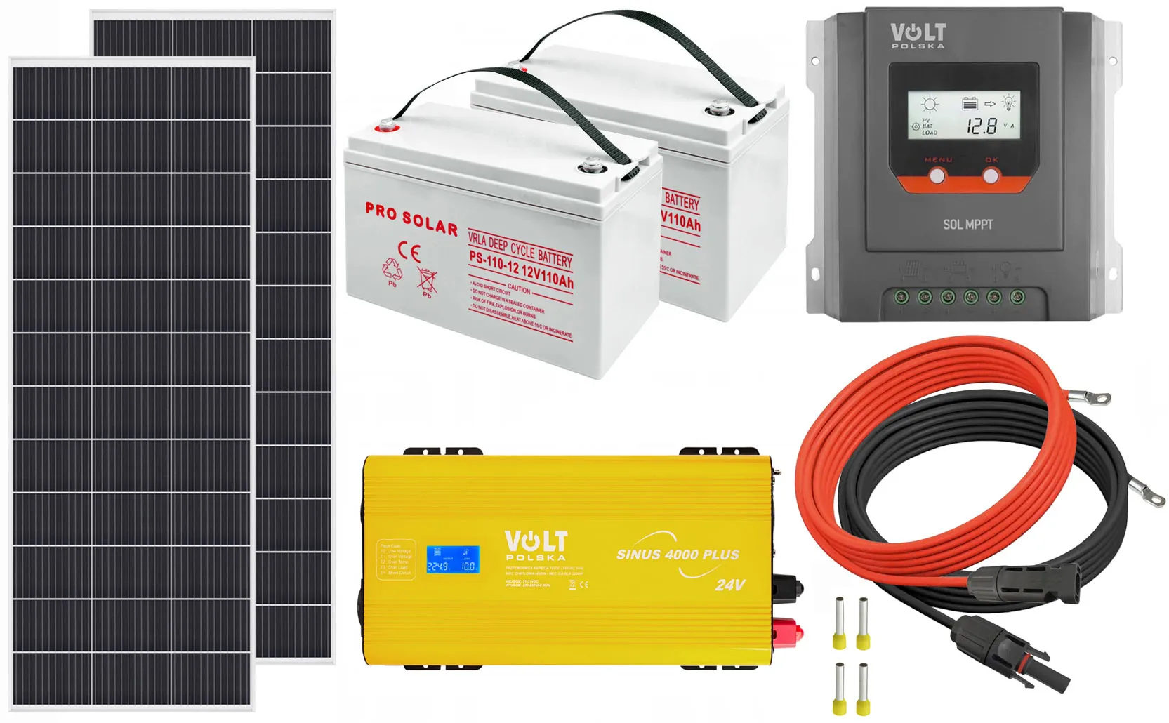 - Dwa akumulatory firmy Volt Polska DEEP CYCLE VPRO SOLAR 12V 110Ah VRLA