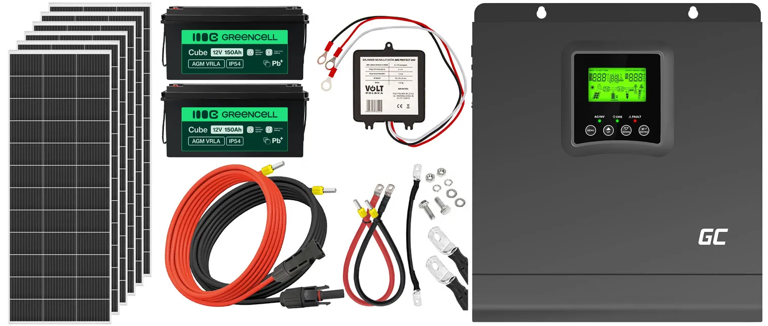 - Inwerter solarny Off-Grid Green Cell 24VDC 230VAC 2000W/4000VA SINUS z ładowarką solarną MPPT