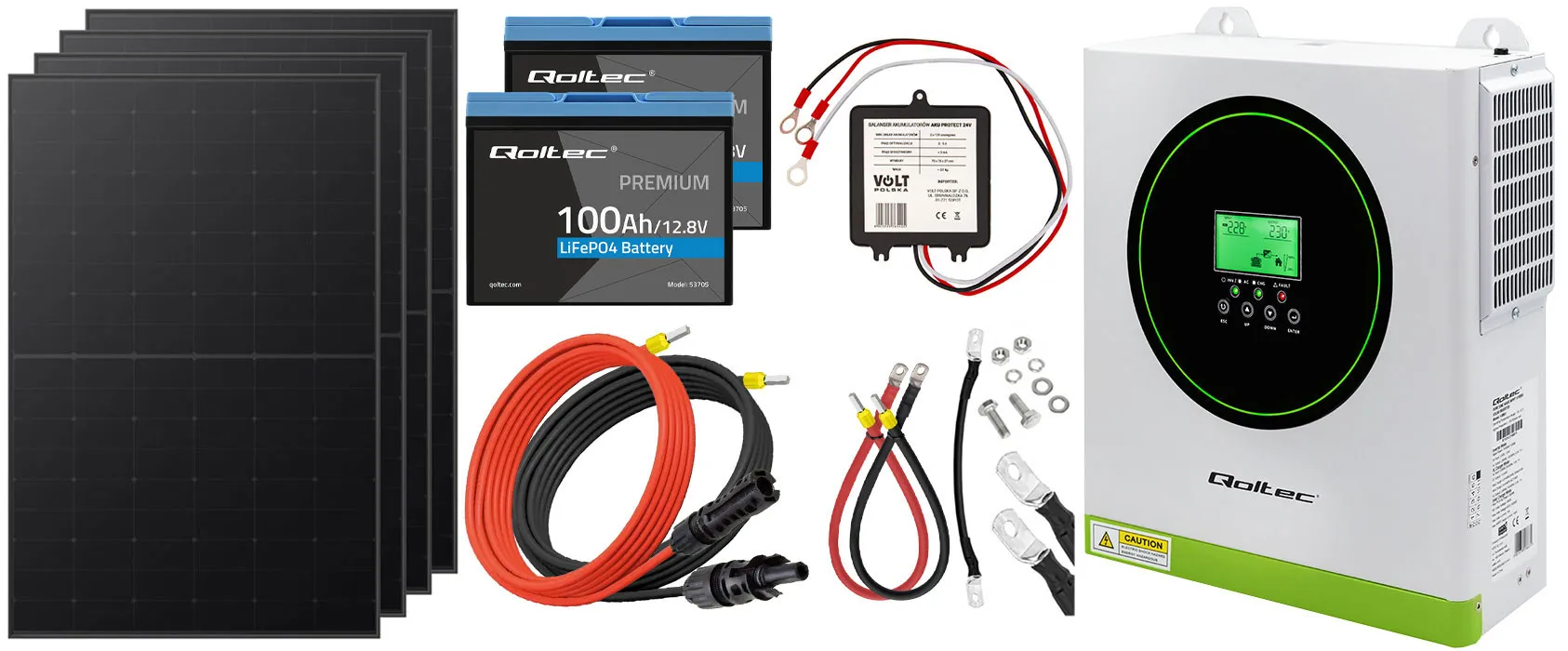 - Hybrydowy inwerter solarny Off-Grid Qoltec Power Factor 1.0 24V 3500W 100A 500V