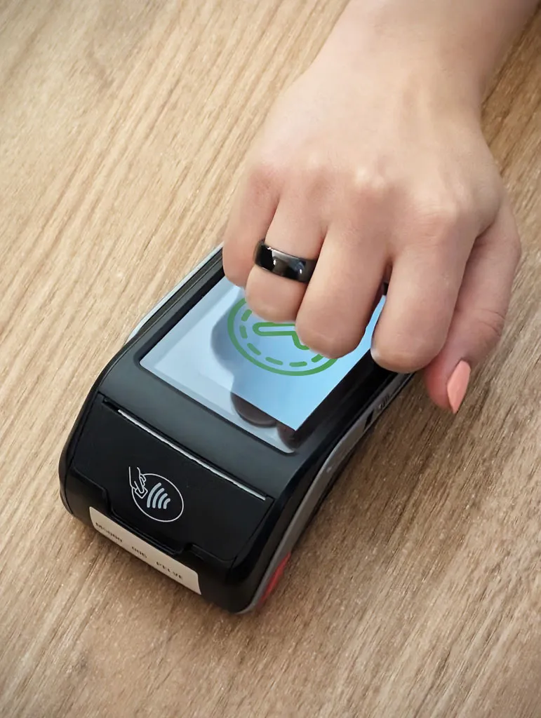 Technologii NFC sprawia, że płatności są szybkie i niewymagające ryzyka. Pierścień wystarczy przyłożyć bezpośrednio do terminala, by dokonać płatności. Cały proces jest nadzorowany przez banki i spełnia najwyższe standardy bezpieczeństwa, zgodne z wytycznymi Visa i Mastercard.