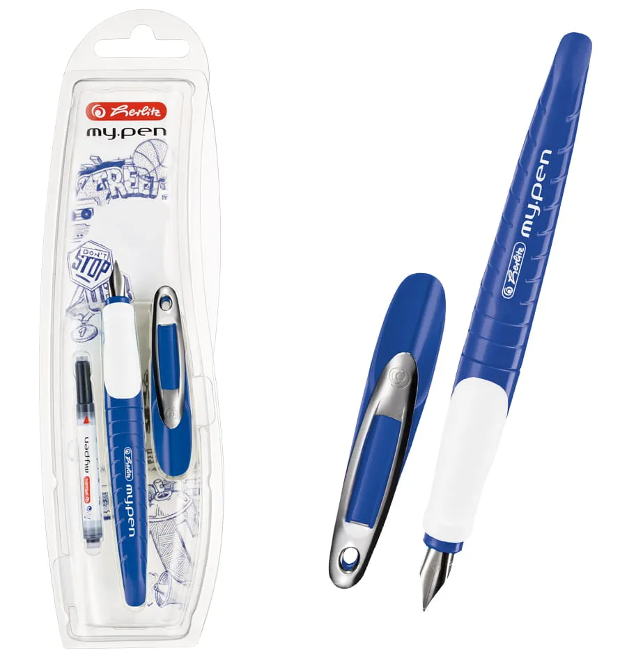 - Pióro wieczne Herlitz My.Pen dla osób praworęcznych - kolor granatowy/biały
