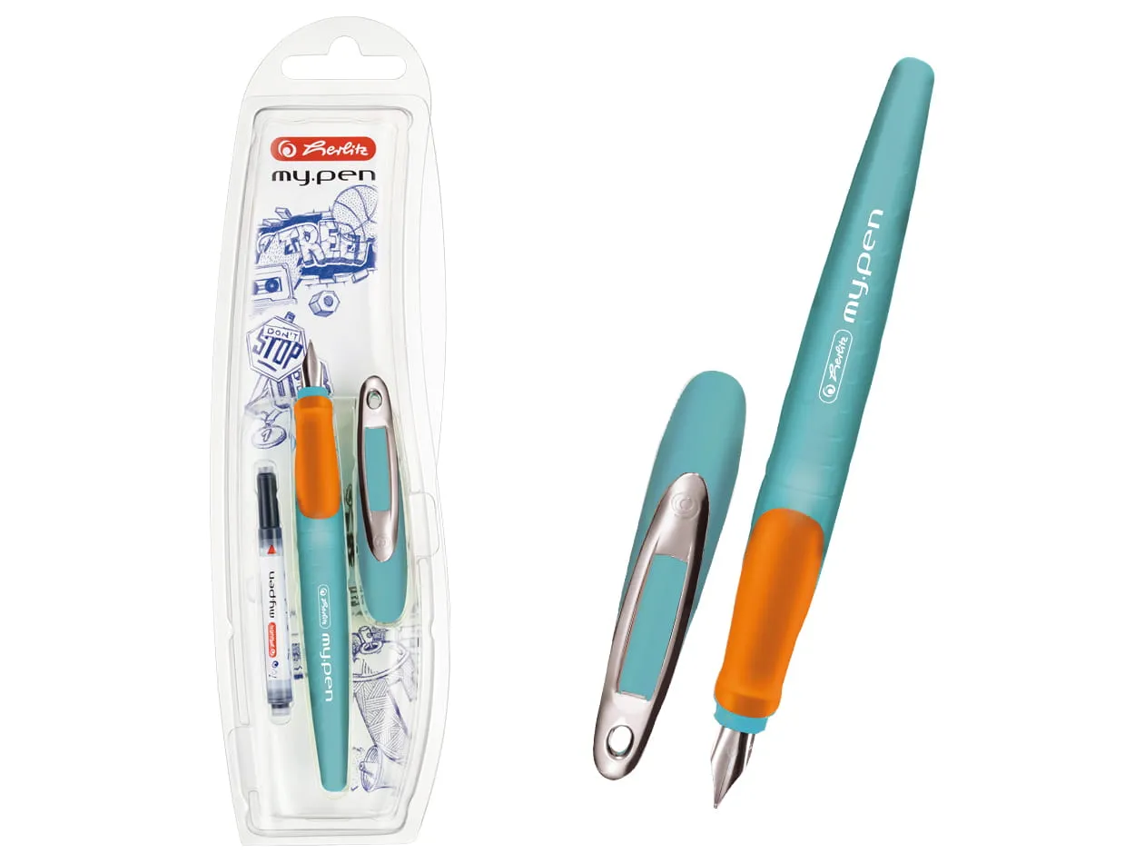 - Pióro wieczne Herlitz My.Pen dla osób praworęcznych - kolor turkusowy/pomarańczowy