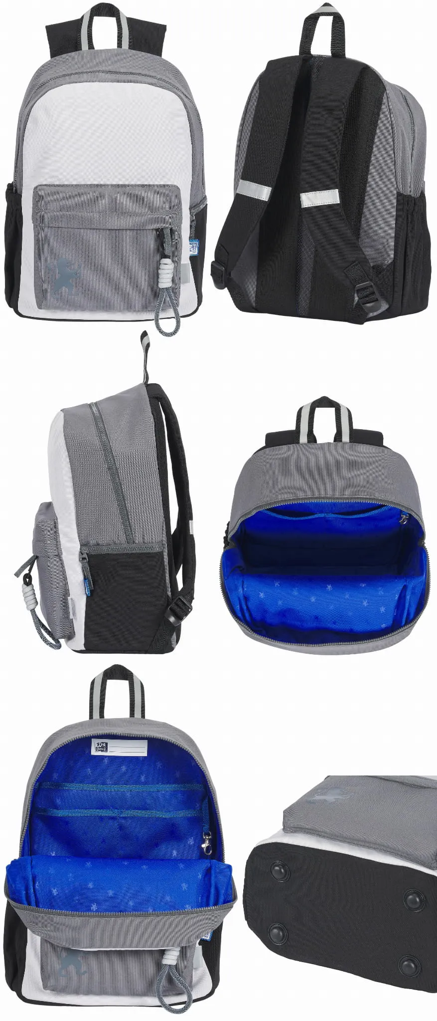 - minimalistyczny design z efektem color-blockingu (czarno-szary), zapewnia plecakowi ponadczasowy i uniwersalny wyraz;