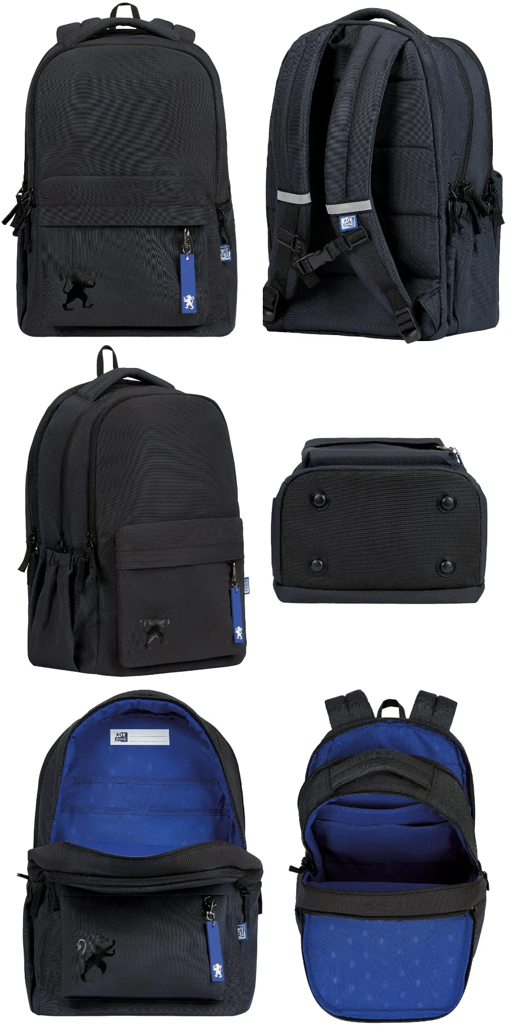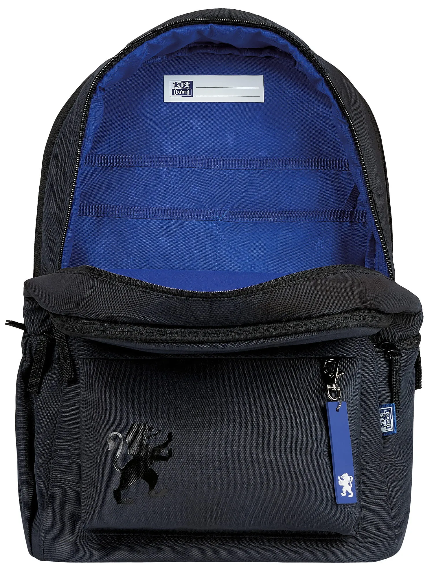 Wnętrze plecaka wyróżnia się niebieską podszewką z regularnym nadrukiem lwa – to subtelne nawiązanie do marki Oxford.