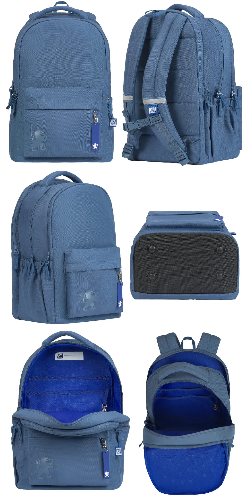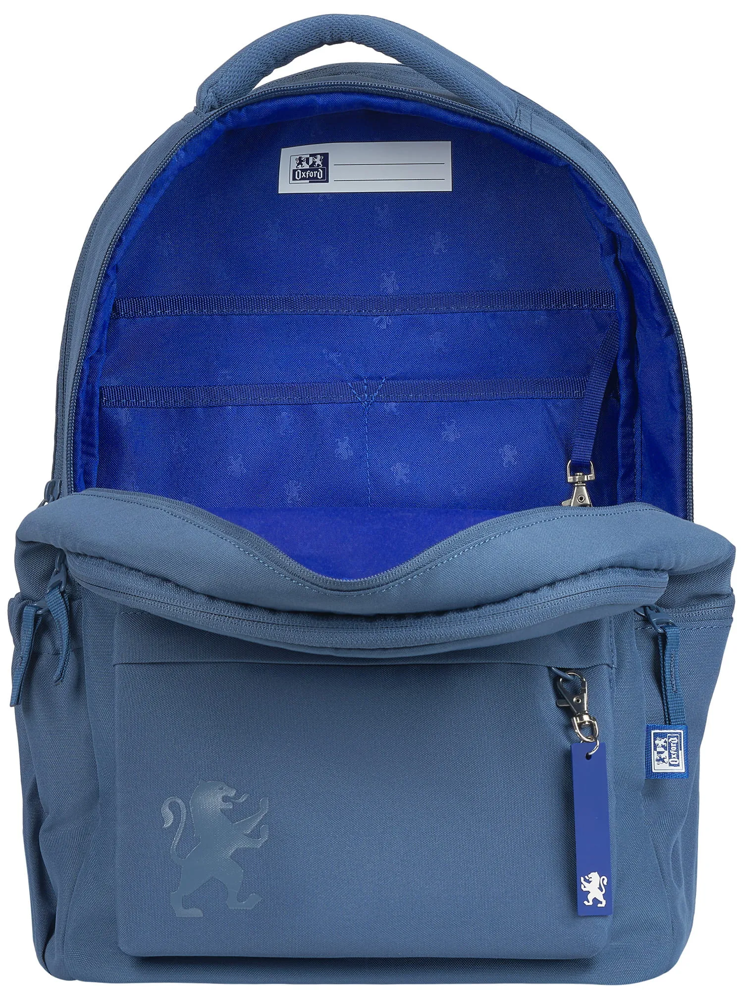 Wnętrze plecaka wyróżnia się niebieską podszewką z regularnym nadrukiem lwa – to subtelne nawiązanie do marki Oxford.