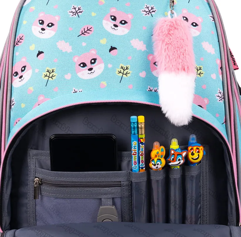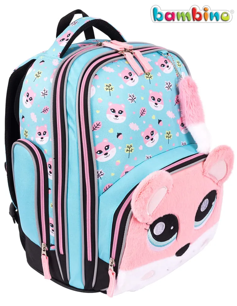 Lekki plecak Bambino Squirrel, idealny na pierwsze lata nauki. Posiada ergonomiczne wyprofilowane plecy, które dbają o prawidłową postawę dziecka.
