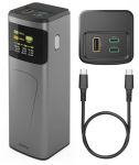 Pojemność 24000mAh pozwala wielokrotnie naładować urządzenia bez dostępu do prądu. Powerbank posiada trzy porty – dwa USB-C i jedno USB-A – umożliwiające jednoczesne zasilanie kilku sprzętów, np. telefonu, smartwatcha i tabletu.