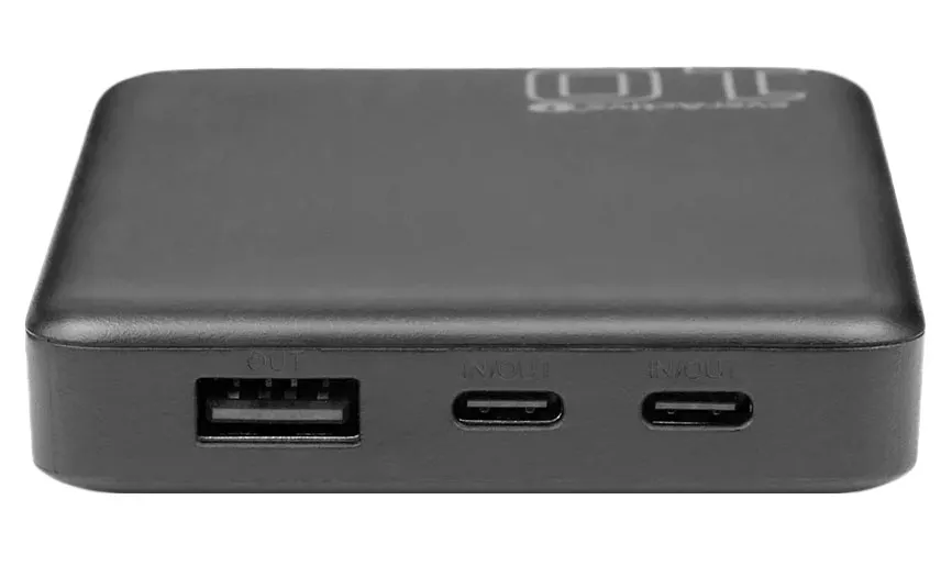 Urządzenie wyposażono w dwa porty USB-C (wejście/wyjście) oraz jeden port USB-A. Pozwala to na ładowanie do trzech urządzeń jednocześnie – od telefonu, przez czytnik e-booków, aż po konsolę przenośną.