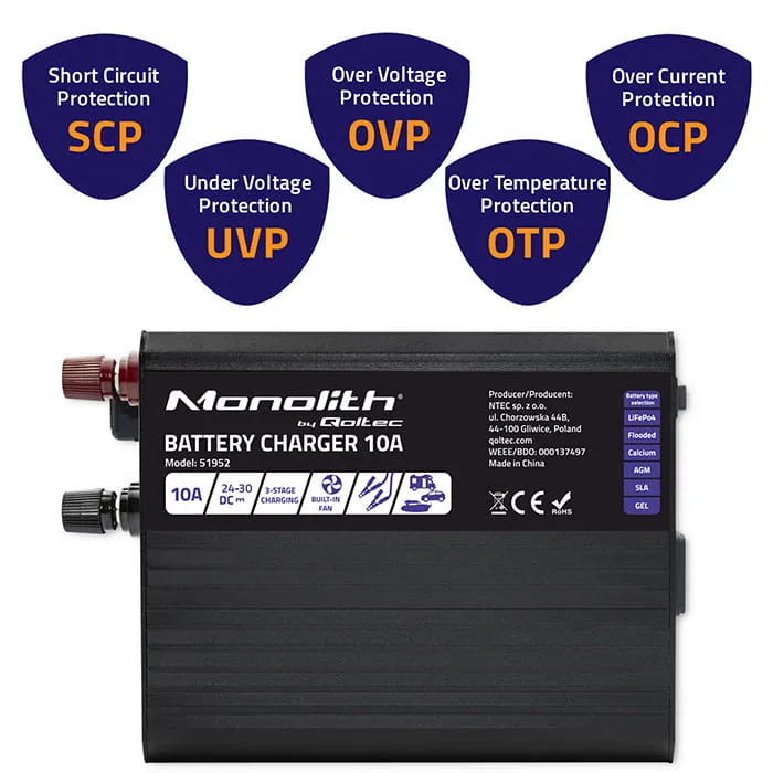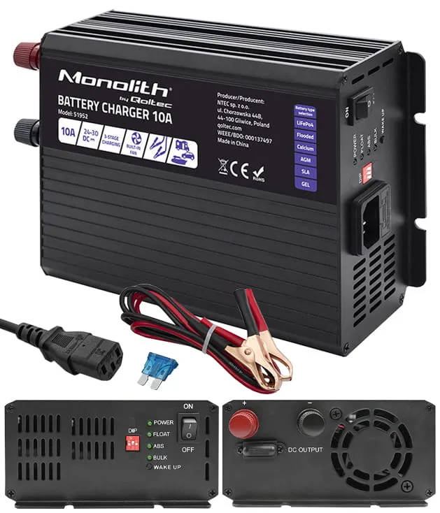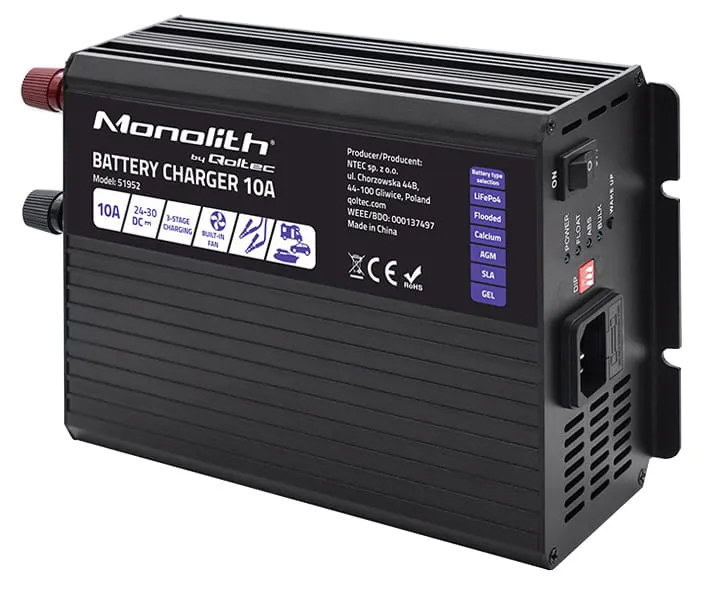 - Inteligentna ładowarka Qoltec Monolith do akumulatorów LiFePO4 AGM GEL SLA 10A 24V