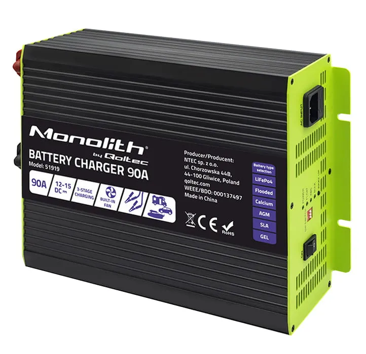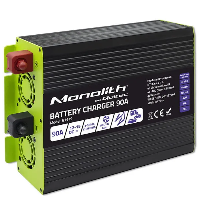 - Inteligentna ładowarka Qoltec Monolith do akumulatorów LiFePO4 AGM GEL SLA 90A 12V