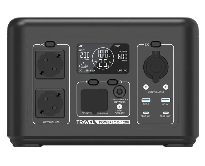 - Przenośna stacja zasilania TRAVEL POWERBOX 1200 (600W) 512Wh