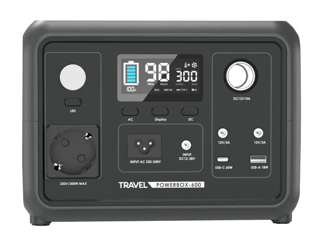 - Przenośna stacja zasilania TRAVEL POWERBOX 600 (300W) 256Wh