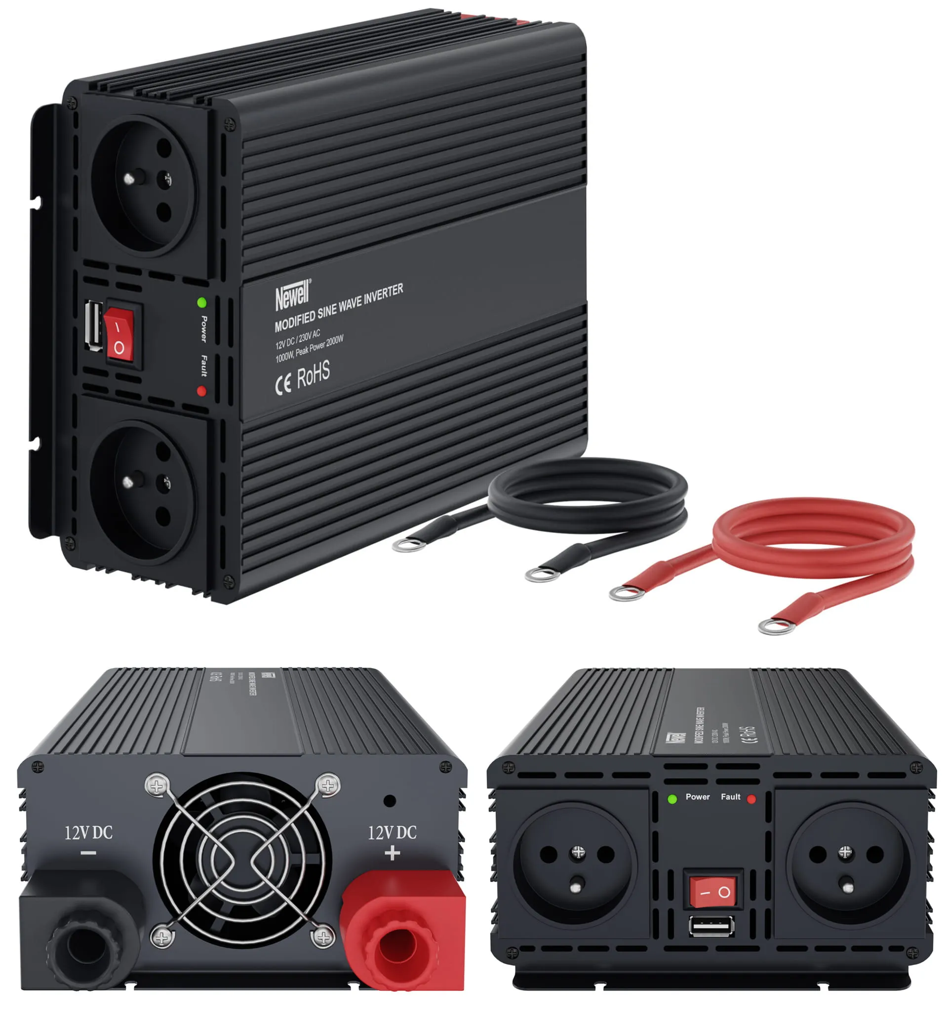 - Model: Przetwornica napięcia Newell ze zmodyfikowaną falą sinusoidalną - 12 V / 230 V, 1000 W