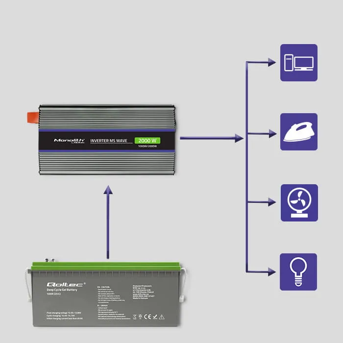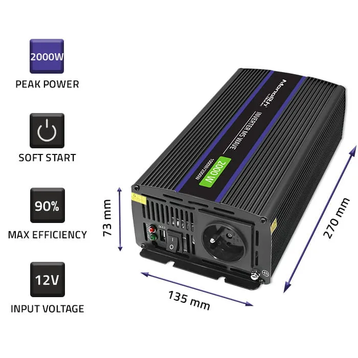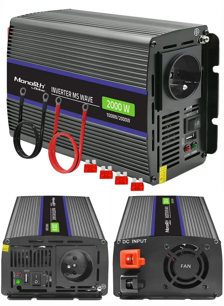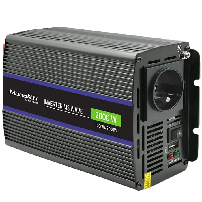 - Przetwornica napięć Qoltec Monolith 2000 modyfikowany sinus 1000/2000W 12V/230V USB