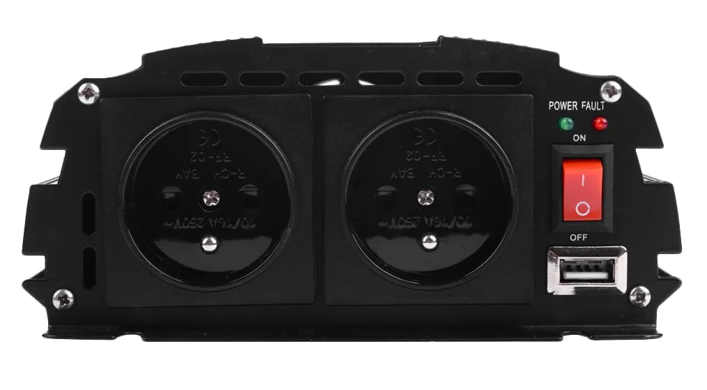 Elektroniczna przetwornica IPS 1000 24V służy do zasilania urządzeń elektrycznych wymagających napięcia przemiennego 230V z akumulatorów i instalacji samochodowych o napięciu stałym 24V.
