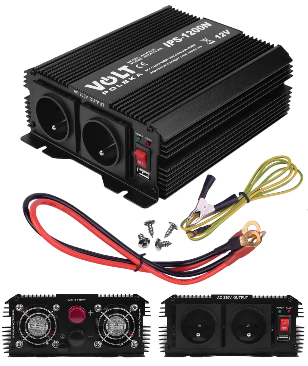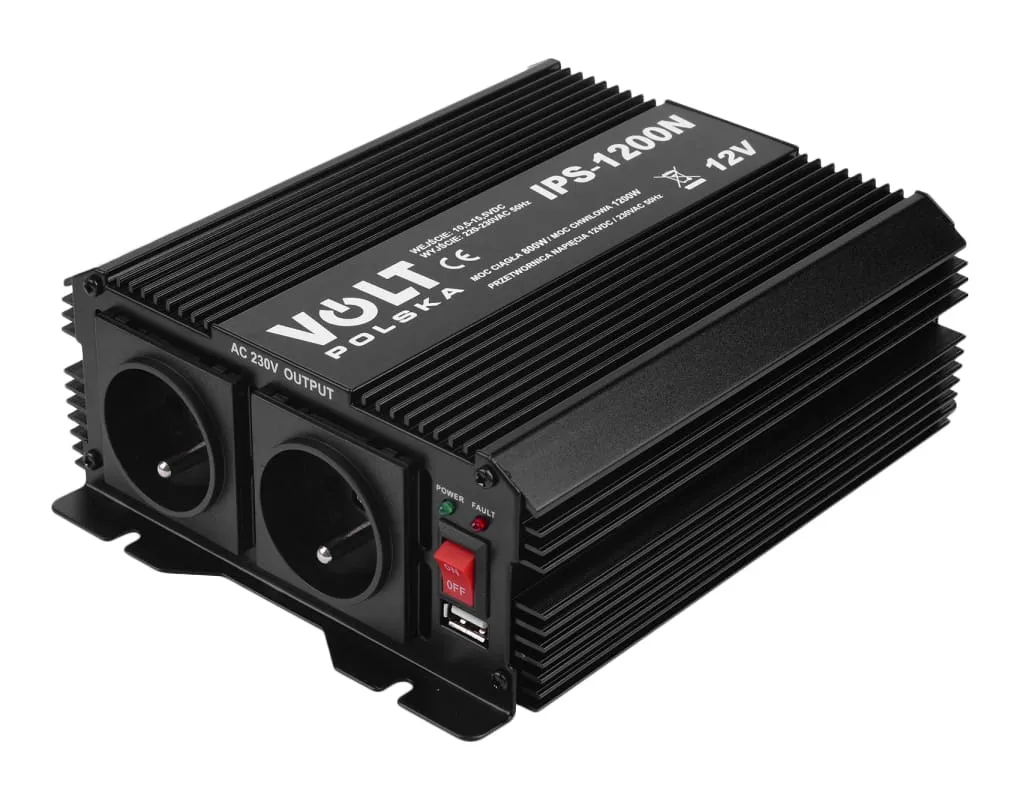 Elektroniczna przetwornica IPS 1200N 12V służy do zasilania urządzeń elektrycznych wymagających napięcia przemiennego 230V z akumulatorów i instalacji samochodowych o napięciu stałym 12V.