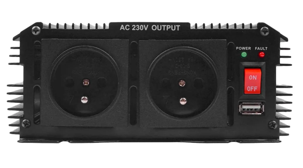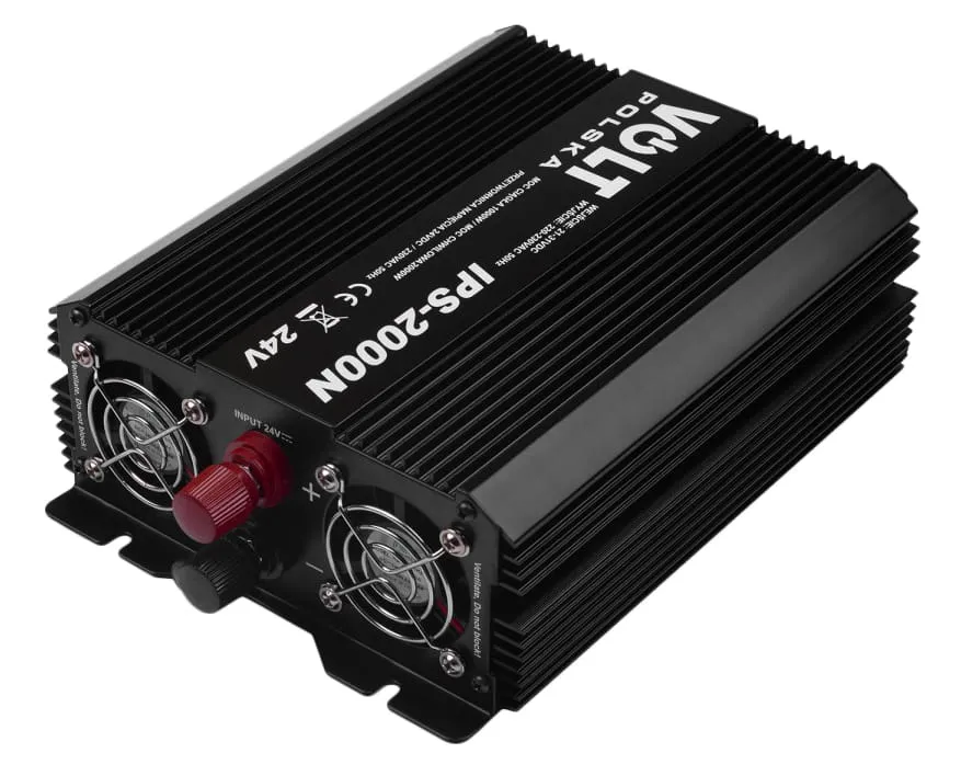 Elektroniczna przetwornica IPS 2000N 24V służy do zasilania urządzeń elektrycznych wymagających napięcia przemiennego 230V z akumulatorów i instalacji samochodowych o napięciu stałym 24V.