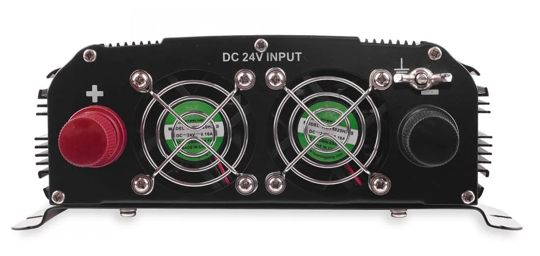 Elektroniczna przetwornica SINUS 3000 24V służy do zasilania urządzeń elektrycznych wymagających napięcia przemiennego 230V z akumulatorów i instalacji samochodowych o napięciu stałym 24V.