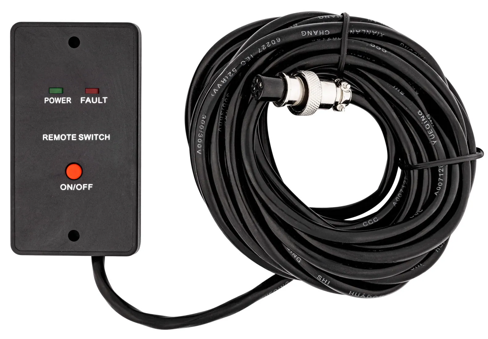 Przewodowy pilot sterowania przeznaczony do sterowania przetwornicami napięcia z serii IPS R. Pilot można podłączyć do przetwornicy i uruchamiać ją zdalnie za pomocą przycisku znajdującego się na panelu. Na panelu znajdują się również 2 diody, które informują użytkownika o stanie przetwornicy (zasilanie, błąd).