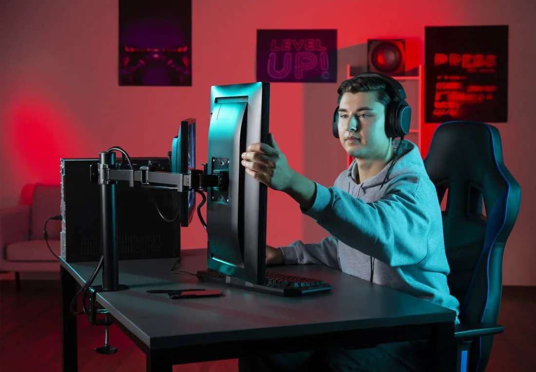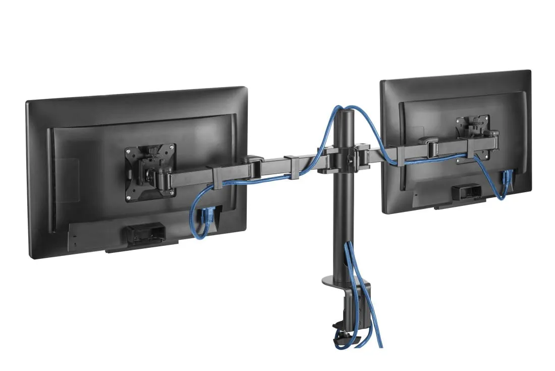 Konstrukcja pozwalająca na montaż dwóch monitorów jest idealnym wyborem dla osób, które nie przepadają za ciągłym przełączaniem się pomiędzy kartami przeglądarki lub aplikacjami. Świetnie nada się do codziennego użytku, poprawiając nie tylko ergonomię, ale i wydajność podczas pracy.