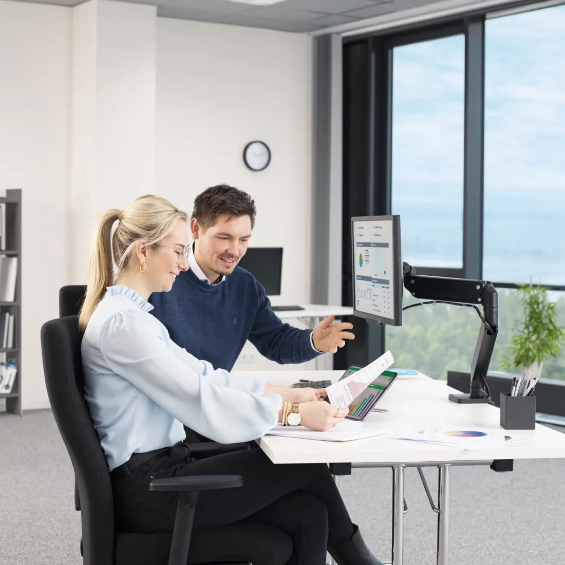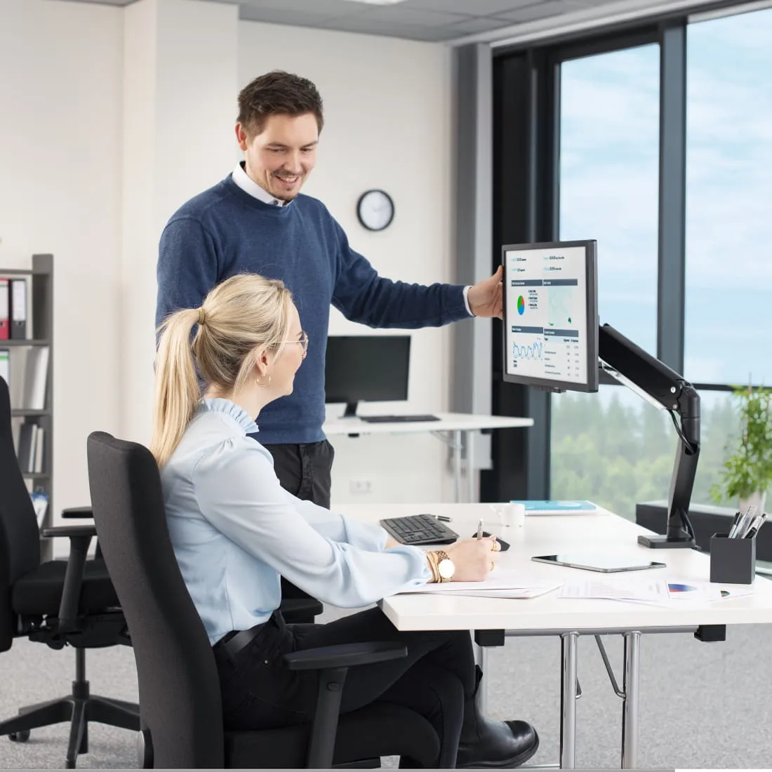 Takie rozwiązanie pozwoli dobrać położenie monitora względem preferencji i wzrostu użytkownika. To idealny wybór skierowany do osób, które chcą zachować wygodną i zdrową postawę podczas pracy z komputerem.