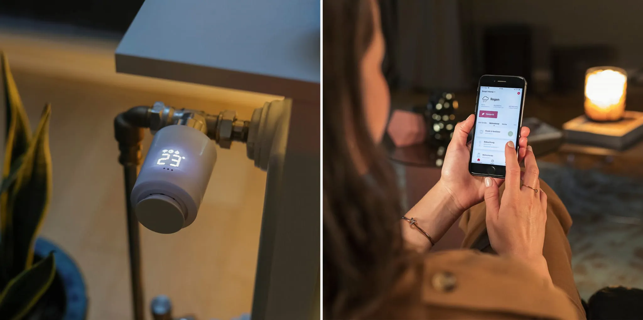 - Tworzenie grup lub scen za pomocą urządzeń zintegrowanych z siecią WLAN: np. w połączeniu z czujnikiem okiennym obniżenie temperatury natychmiast po otwarciu okna