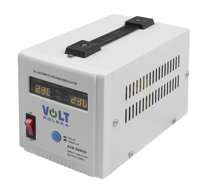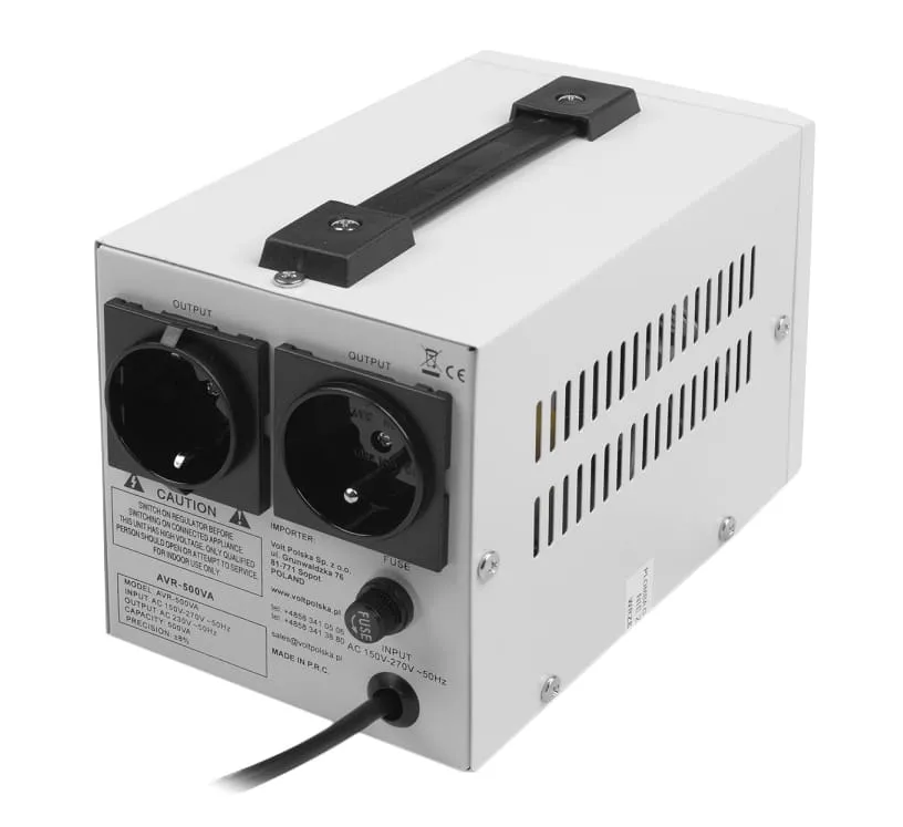 Stabilizator napięcia sieciowego AVR 500VA łączy w sobie cechy 2 urządzeń: regulatora napięcia i urządzenia przeciwprzepięciowego.