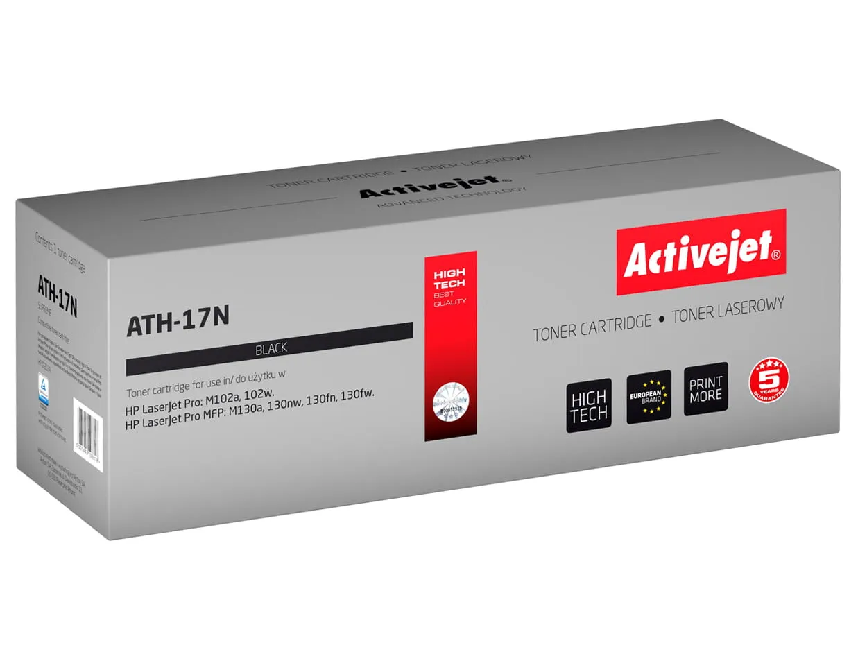 Toner firmy ActiveJet oryginalnie zapakowany w folię ochronną i pudełko.