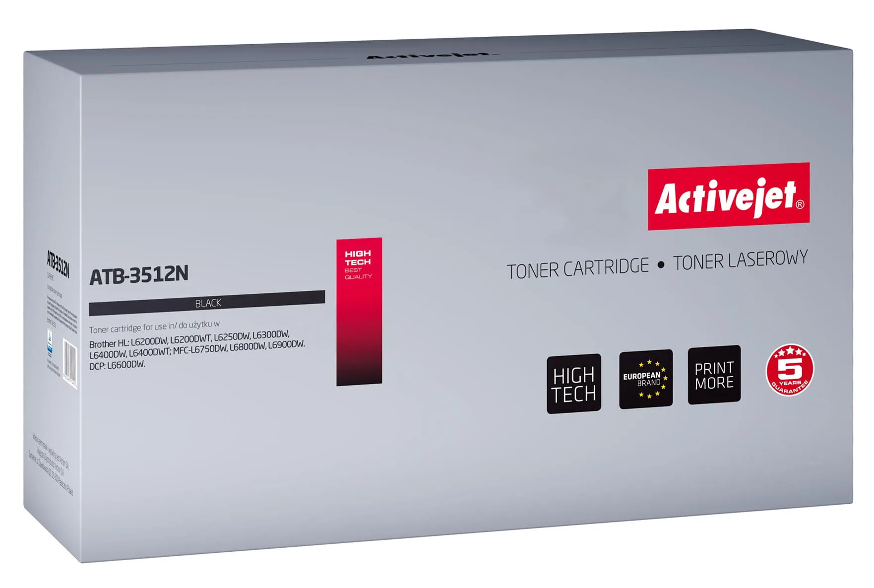 Toner firmy ActiveJet oryginalnie zapakowany w folię ochronną i pudełko.