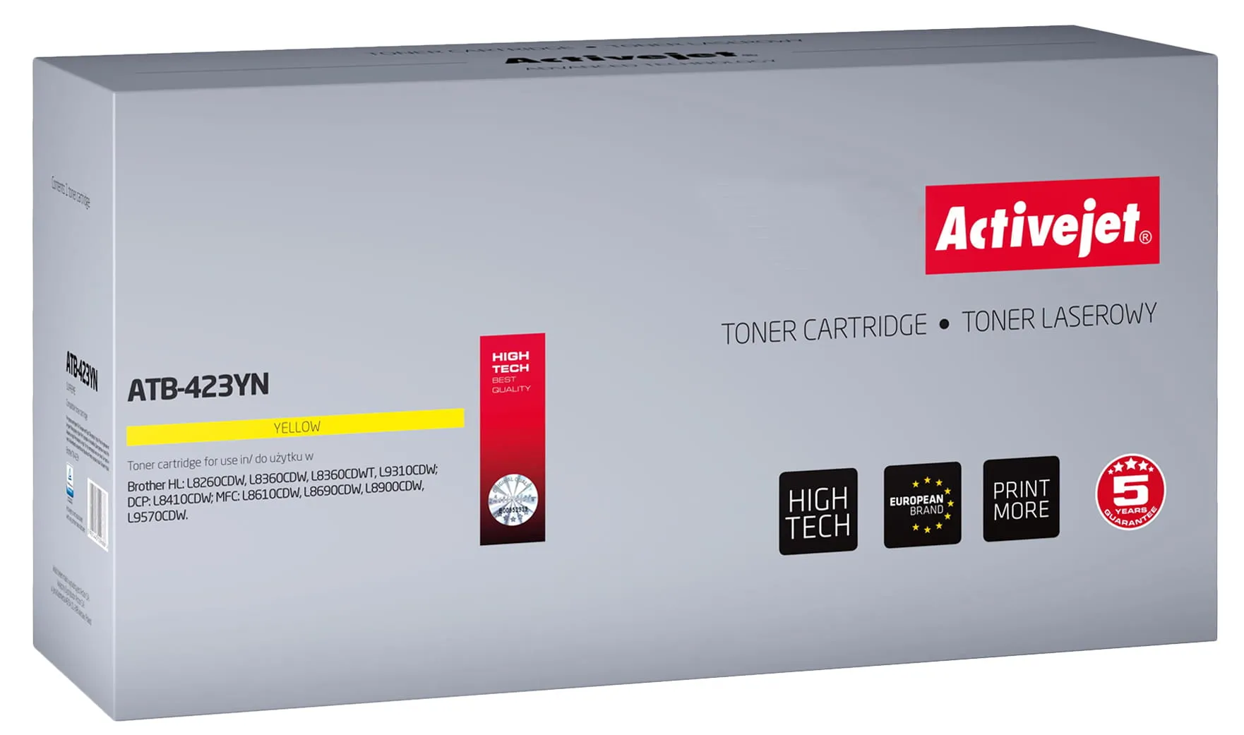Toner firmy ActiveJet oryginalnie zapakowany w folię ochronną i pudełko.