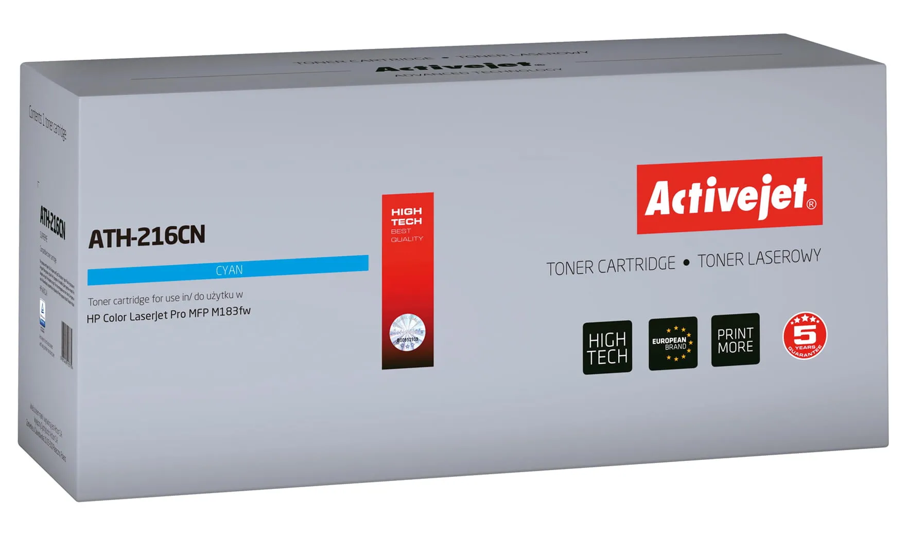 Toner firmy ActiveJet oryginalnie zapakowany w folię ochronną i pudełko.