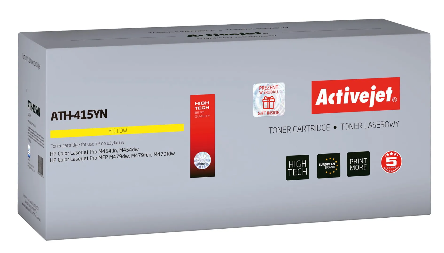 Toner firmy ActiveJet oryginalnie zapakowany w folię ochronną i pudełko.