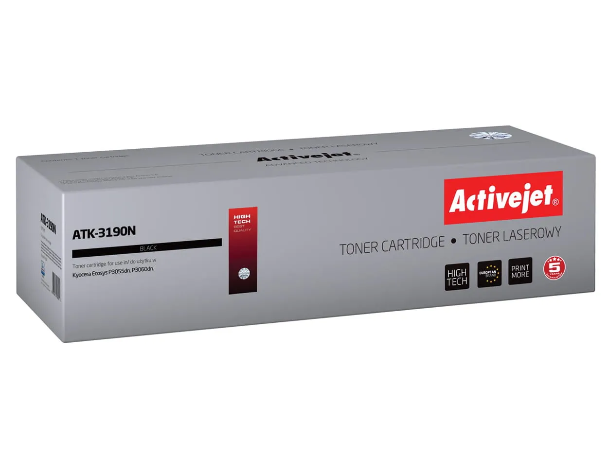 Toner firmy ActiveJet oryginalnie zapakowany w folię ochronną i pudełko.