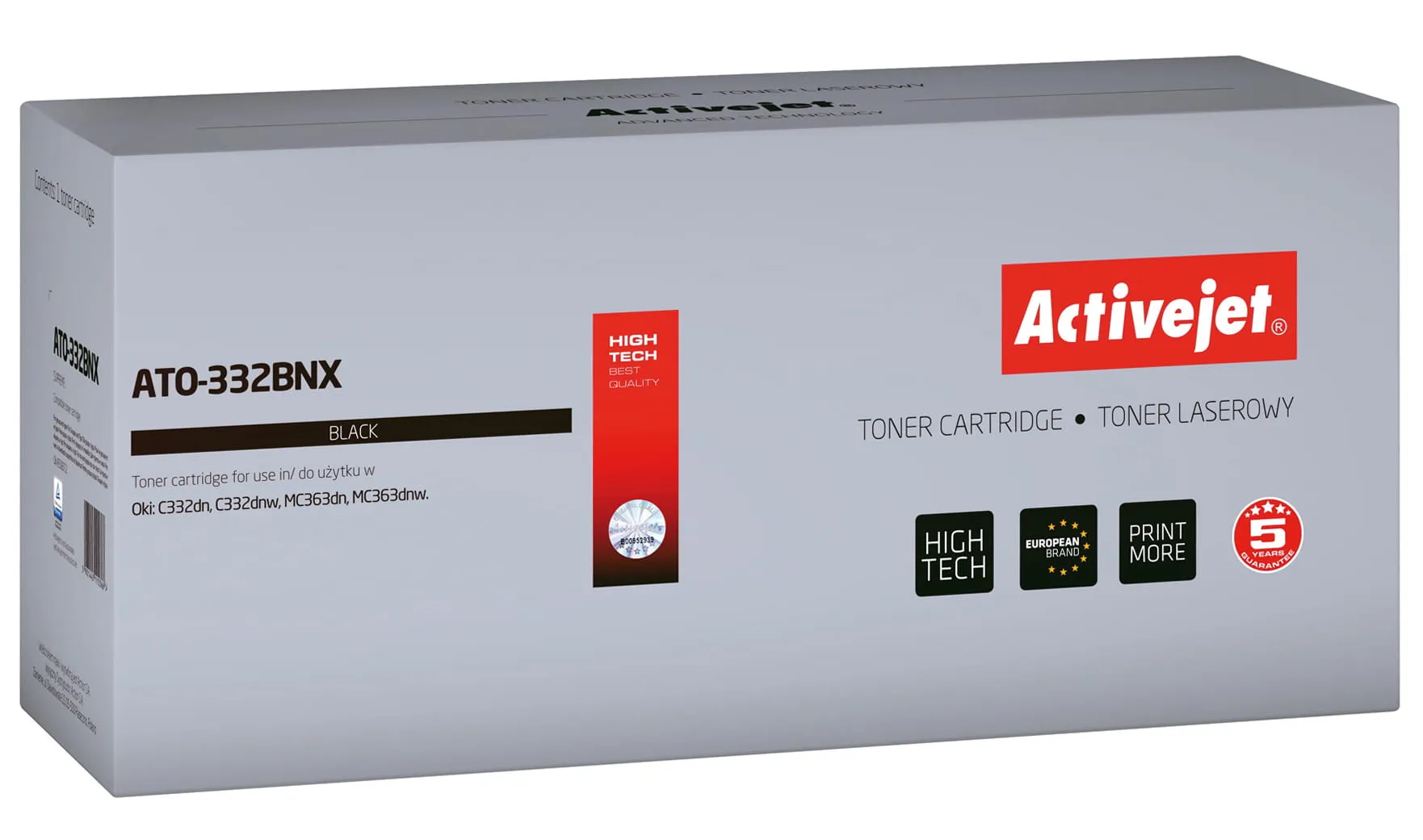 Toner firmy ActiveJet oryginalnie zapakowany w folię ochronną i pudełko.