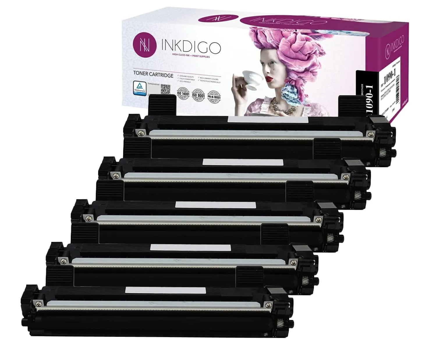 Pięć tonerów firmy Inkdigo oryginalnie zapakowany w folię ochronną i pudełko.